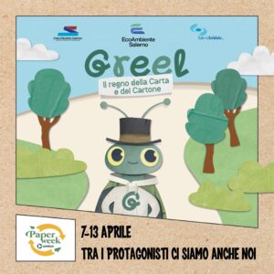 Greel Ecoambiente Salerno tra i protagonisti della #PaperWeek di Comieco: sabato 12 e domenica 13 aprile appuntamento al Parco Pinocchio di Salerno con “Greel – il Regno della Carta e del Cartone” Il 12 e 13 aprile partecipa con noi alla settimana di #informazione e #formazione sul riciclo di carta e cartone promossa dal Consorzio Nazionale per il Recupero e Riciclo degli imballaggi cellulosici con l’iniziativa #Greel – il Regno della Carta e del Cartone.